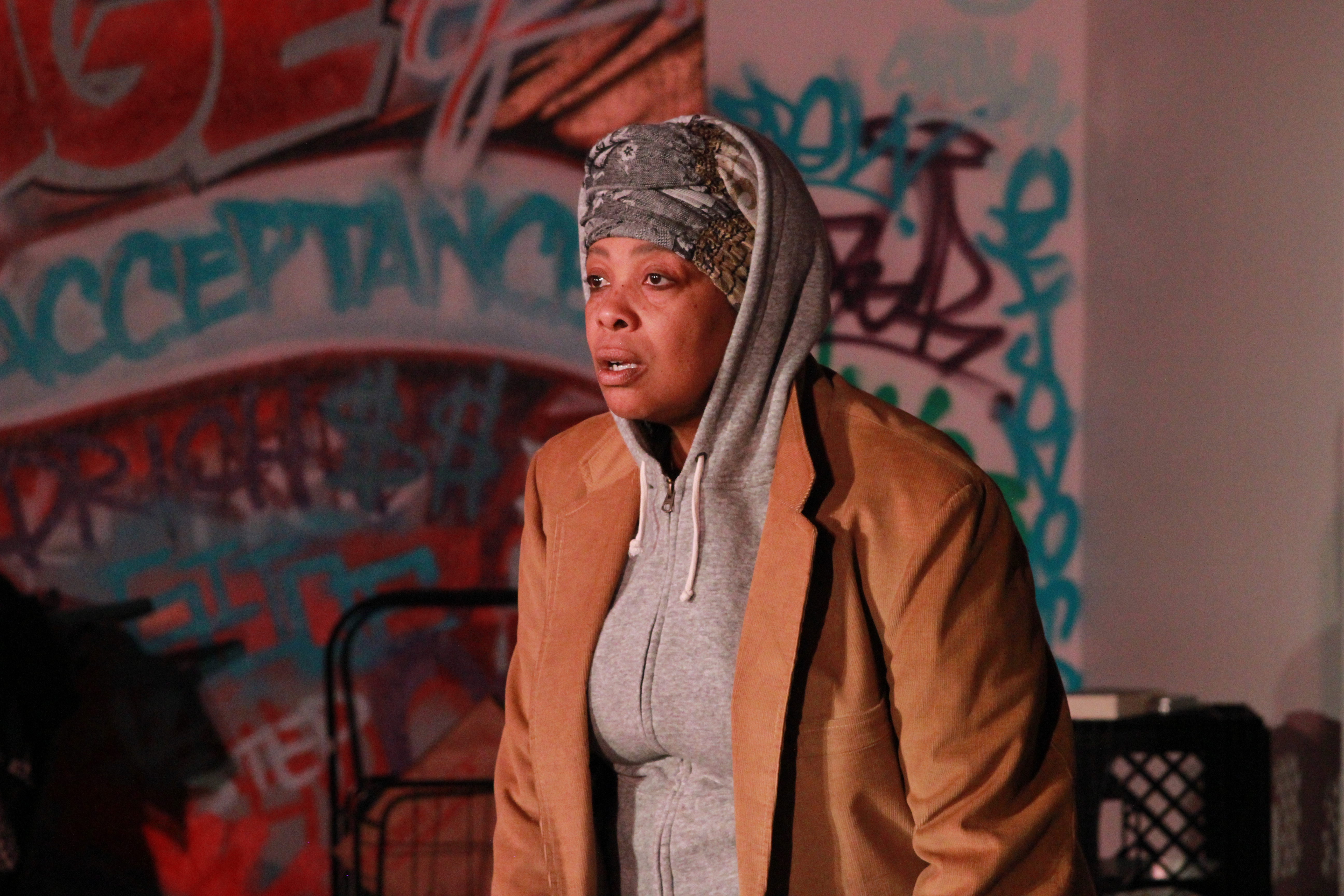 Ramirez digs deep into stories at the Village of Radical Acceptance, a constantly moving and evolving homeless community. Warm-hearted, dexterous Kimberly Daniels plays the quintessentially charitable Mama Gwen. Mama Gwen uses a firm, yet compassionate hand to create a family dynamic, struggling to keep her brood together and alive.